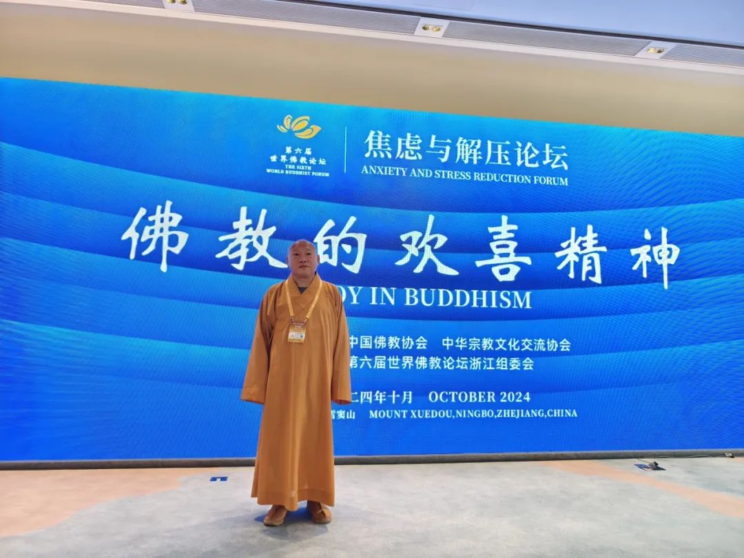 2024年10月15日,第六届世界佛教论坛以“同愿同行·和合共生”为主题,在中国浙江宁波盛大启幕。来自全球72个国家和地区的佛教界人士、专家学者和嘉宾代表出席论坛。中国佛教协会副会长、广东省佛教协会会长、广州光孝寺方丈明生大和尚出席了此活动,并于“公益与慈善论坛” 做主题发言,对佛教的社会责任做了深入的解析。